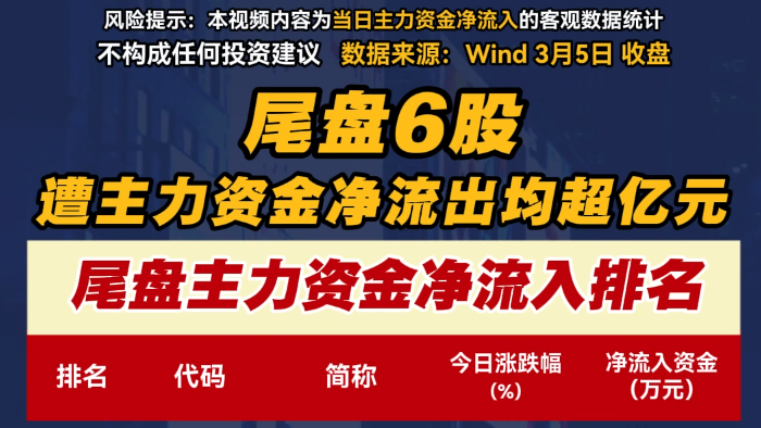 尾盤(pán)6股遭主力資金凈流出均超億元