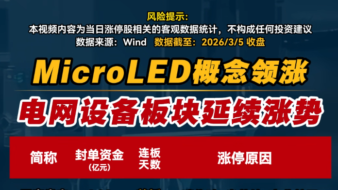 MicroLED概念領(lǐng)漲 電網(wǎng)設(shè)備板塊延續(xù)漲勢(shì)